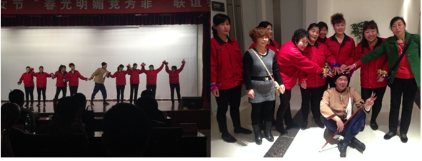 2月29日接到西客站領導的通知,應邀參加3月4日舉辦的慶三八聯(lián)誼活動。在我物業(yè)趙傳和經理的領導下,項目全體人員齊動腦,共同出謀劃策,最后選定由保潔部主管杜紅國和保潔人員們出演“杜大娘學跳舞”。